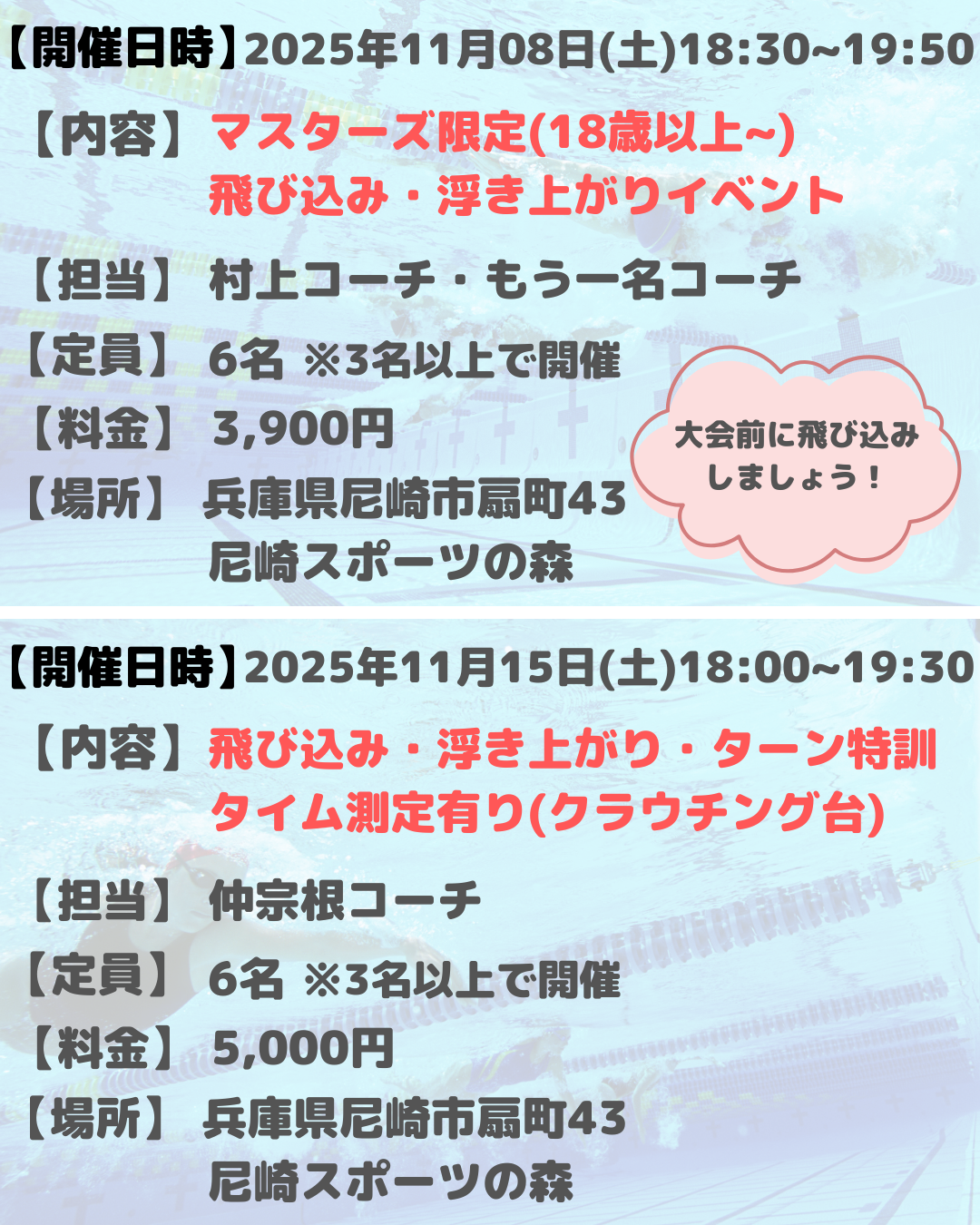 流水プール・飛込み/ターンのグループレッスン!