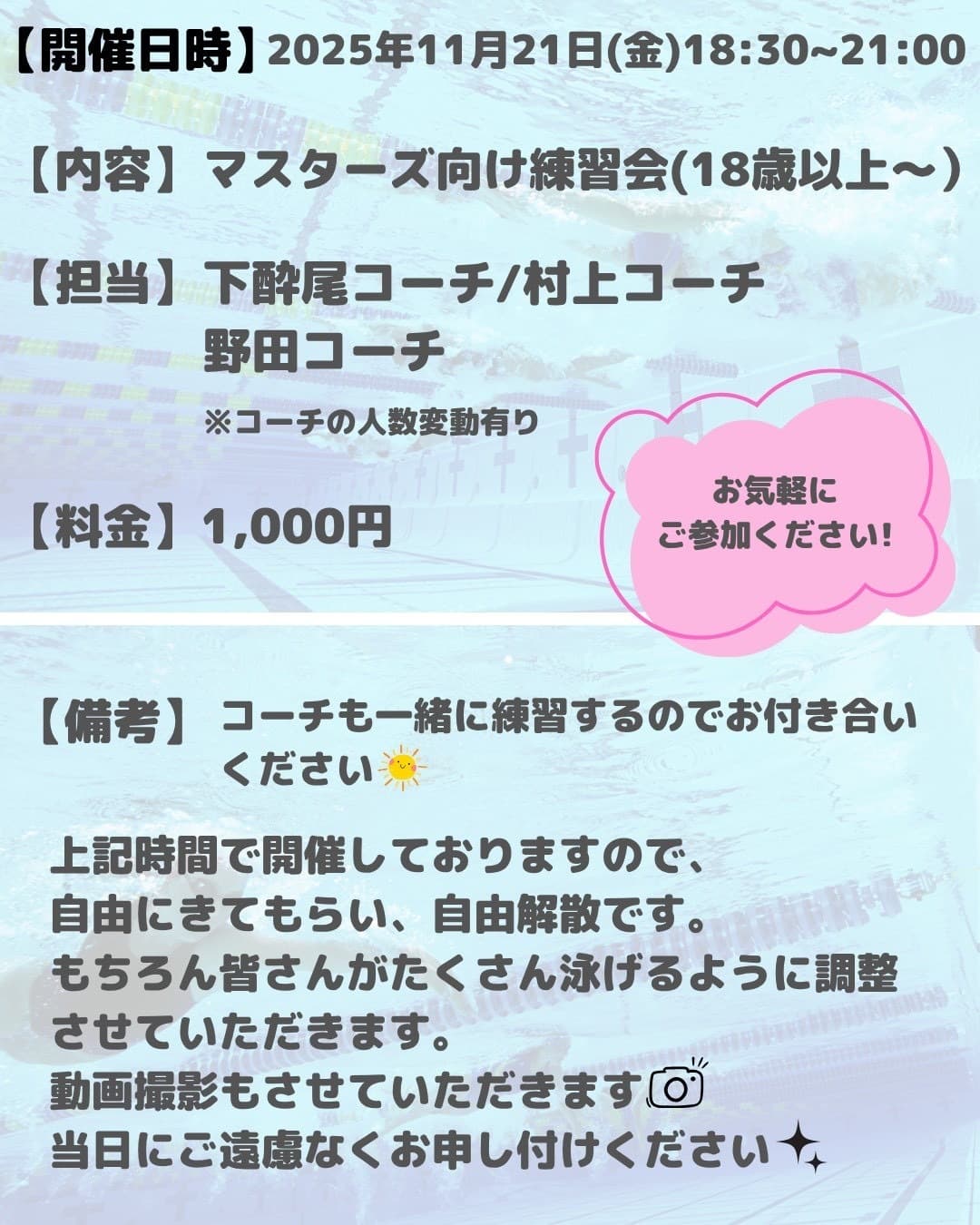 流水プール・飛込み/ターンのグループレッスン!