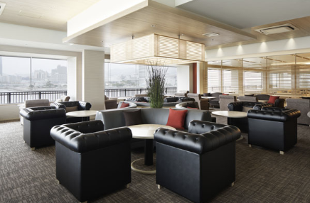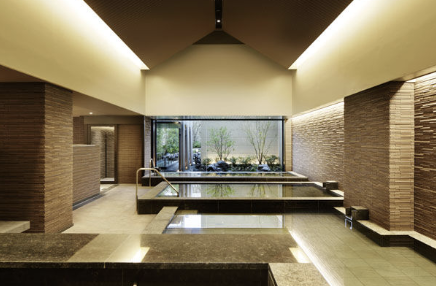 レッスン前後、温泉やラウンジを自由に行き来可能